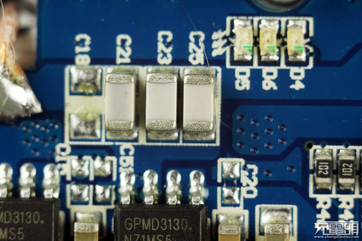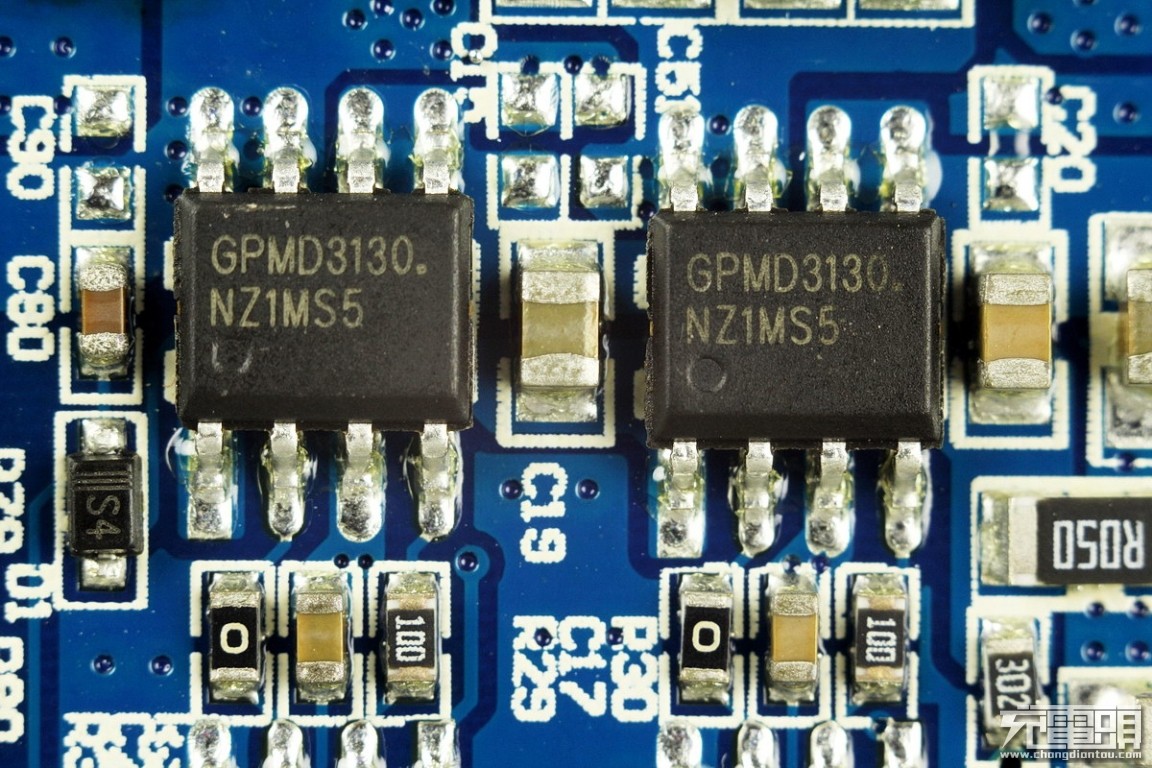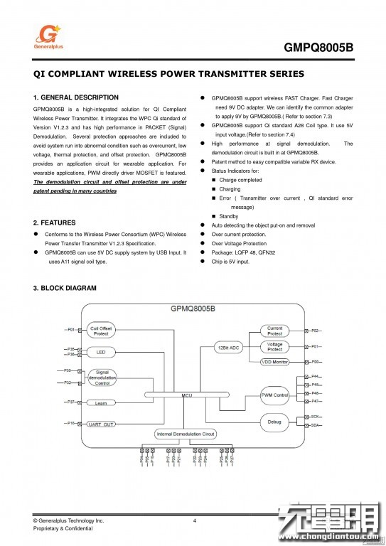 性能方面,采用PCB与线圈分离式的结构,可有助于实现良好的散热。采用凌阳(凌通)整套无线充电发射端方案:GPMQ8005B主控芯片+ GPMD2130A驱动芯片+GPMD3130稳压MOS管,均属于老牌大厂的方案,产品性能可得到有效保证