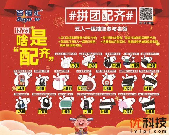 另外,百款潮品IT大集结,罗技樱桃雷蛇JBL大牌特卖直降200元,金士顿32G U盘只要9.9元!活动期间,消费者无需额外消费,即可疯抢1000个拼团钜惠名额。每5人必中1个,抽中即可享受团购价购以下潮品——