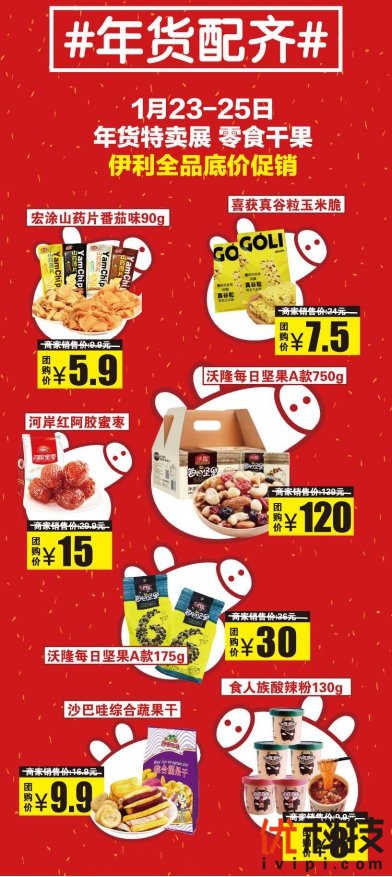 23-25日年货特卖展,零食干果、伊利全品低价促销。抢到就是赚到,新春给你的年货通通配齐!百脑汇年终大“放价”,拼一拼团购更优惠!
