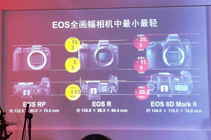 EOS RP(左)与EOS R(右)相比体型明显要小一大圈