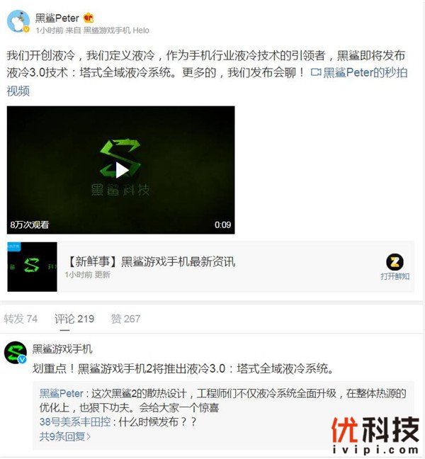 尤其是黑鲨科技CEO吴世敏在微博上接连给大家带来关于黑鲨手机2代的新消息,今天黑鲨科技CEO吴世敏在微博上宣称作为手机行业液冷技术的引领者,黑鲨手机2代将会搭载液冷3.0技术:塔式全域液冷系统,让性能怪兽骁龙855在理想温度环境下发力。