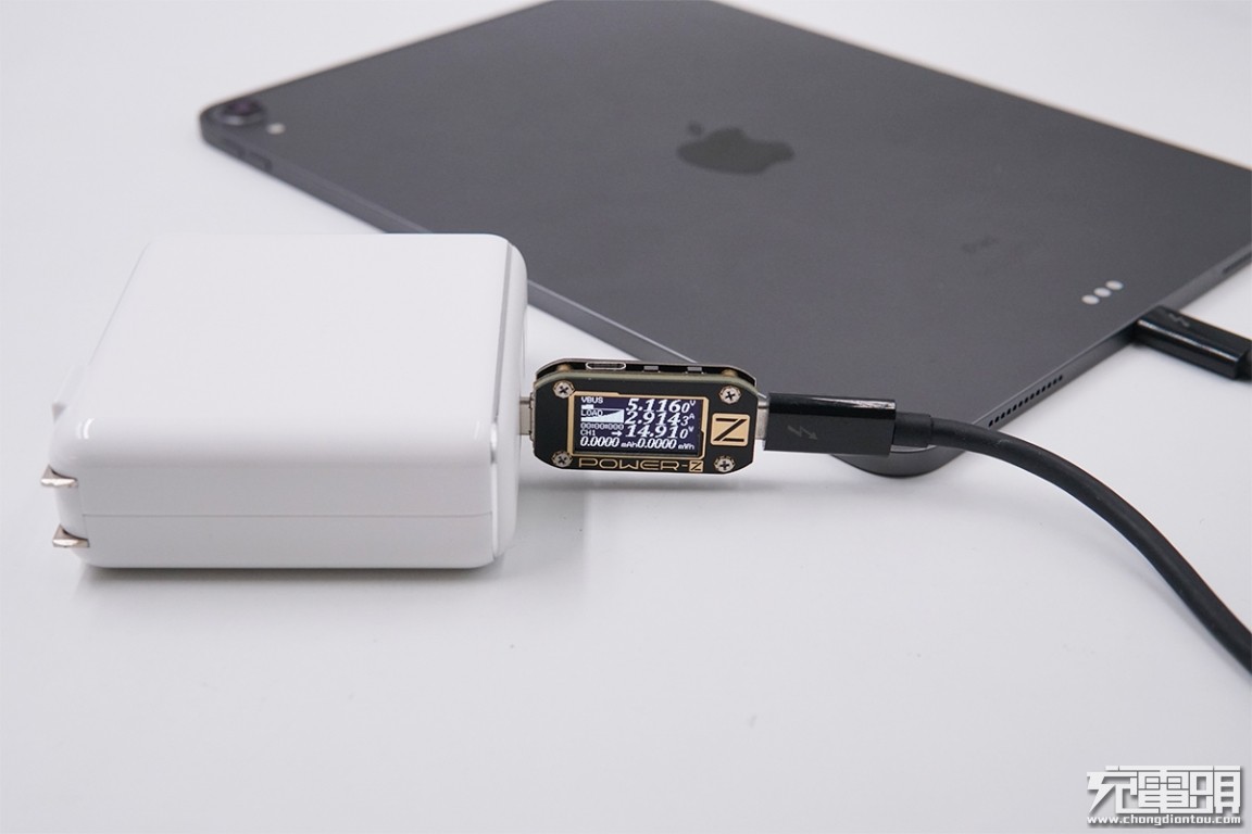 USB-C输出接口充iPad Pro 11英寸,电压5.11V,电流2.91A,功率14.91W,开启PD充电。