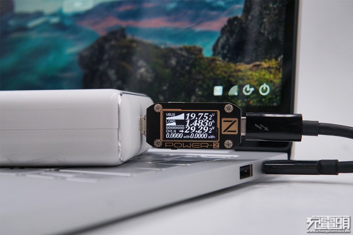 USB-C输出接口充小米笔记本Air,电压19.75V,电流1.48A,功率29.29W,开启PD快充。