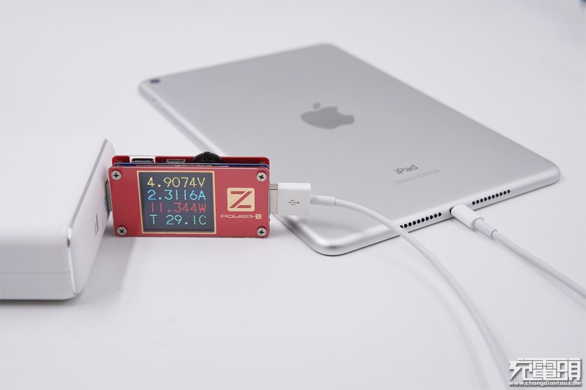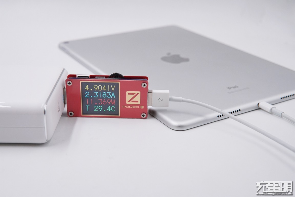 USB-A输出接口充iPad Air3,电压4.9V,电流2.31A,功率11.36W,开启Apple 2.4A快充。