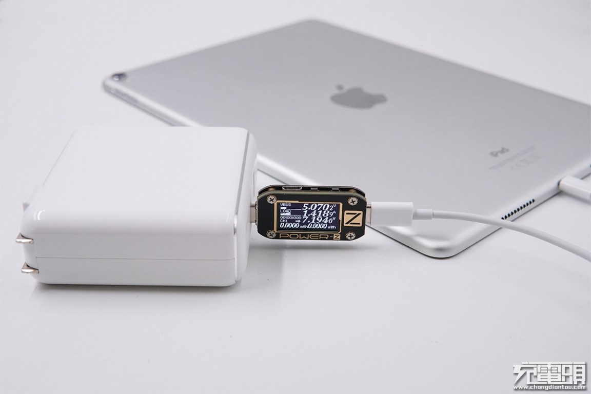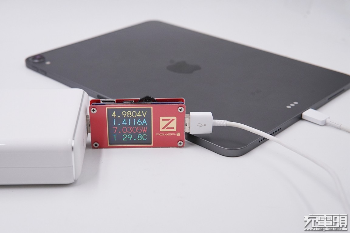 USB-C输出接口充iPad Pro 10.5英寸,电压5.07V,电流1.41A,功率7.19W,开启PD充电。