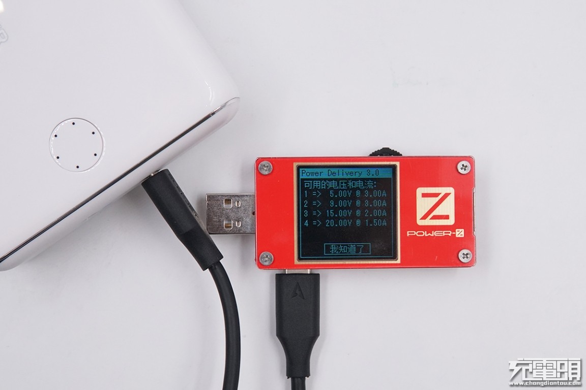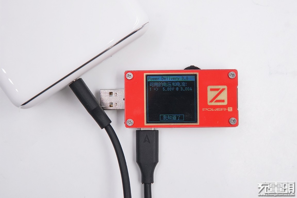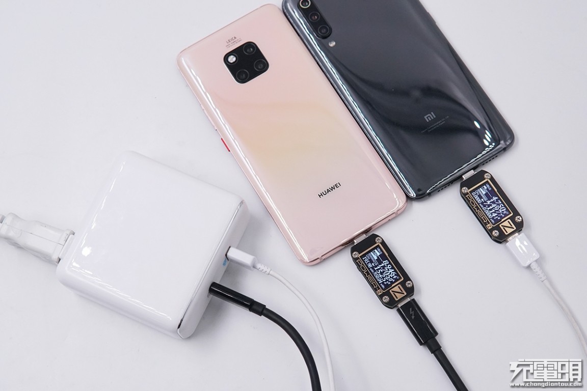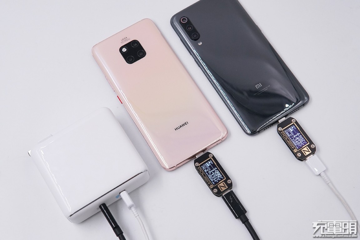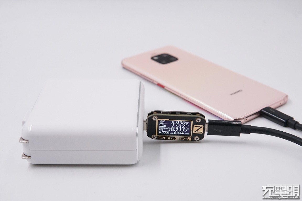 虽然充华为Mate 20 Pro时功率较低,但小编使用Power-Z KM001C测试仪进行上位机监测,发现两者有PD通讯交流,确实为PD充电。