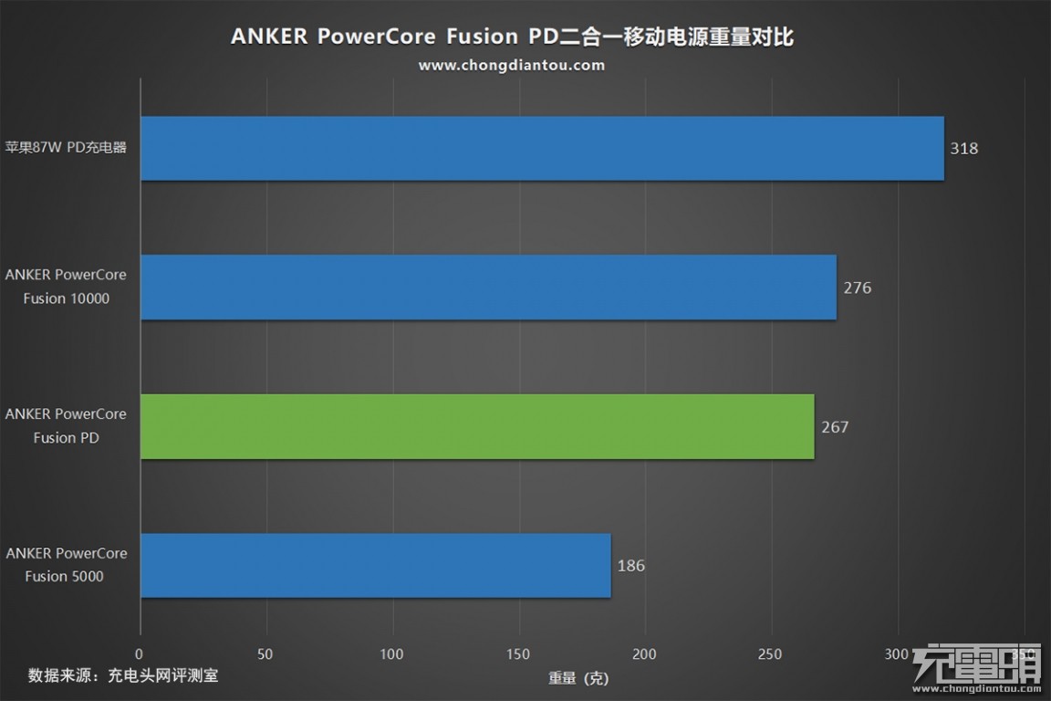 与苹果87W PD充电器和超级充10000相比,重量更轻。与上一代超级充5000相比,在加入30W PD快充的情况下重了80g。