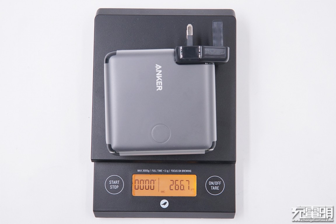 重量方面,电子秤称得重量为266.7g,相当于1.5部iPhone XS的重量。