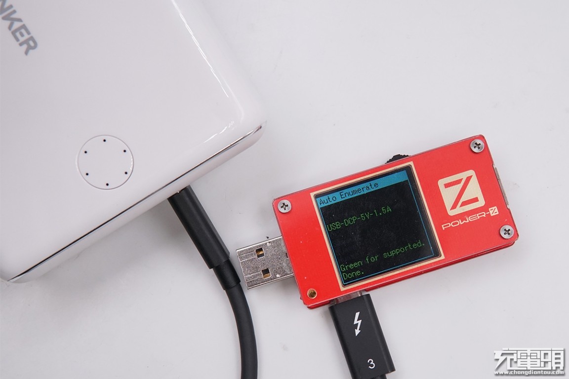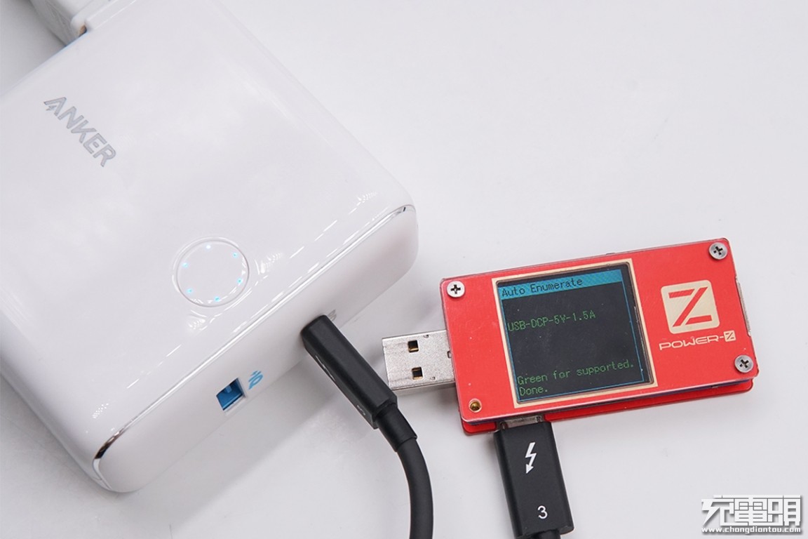 在之前的协议测试中我们已经知道ANKER PowerCore Fusion Power Delivery在充电器模式下USB-C输出接口PD输出会得到增强,但USB-A输出接口并未有明显变化,接下来小编就只测试充电器模式下的ANKER PowerCore Fusion Power Delivery USB-C口兼容性情况,看看具体表现如何。