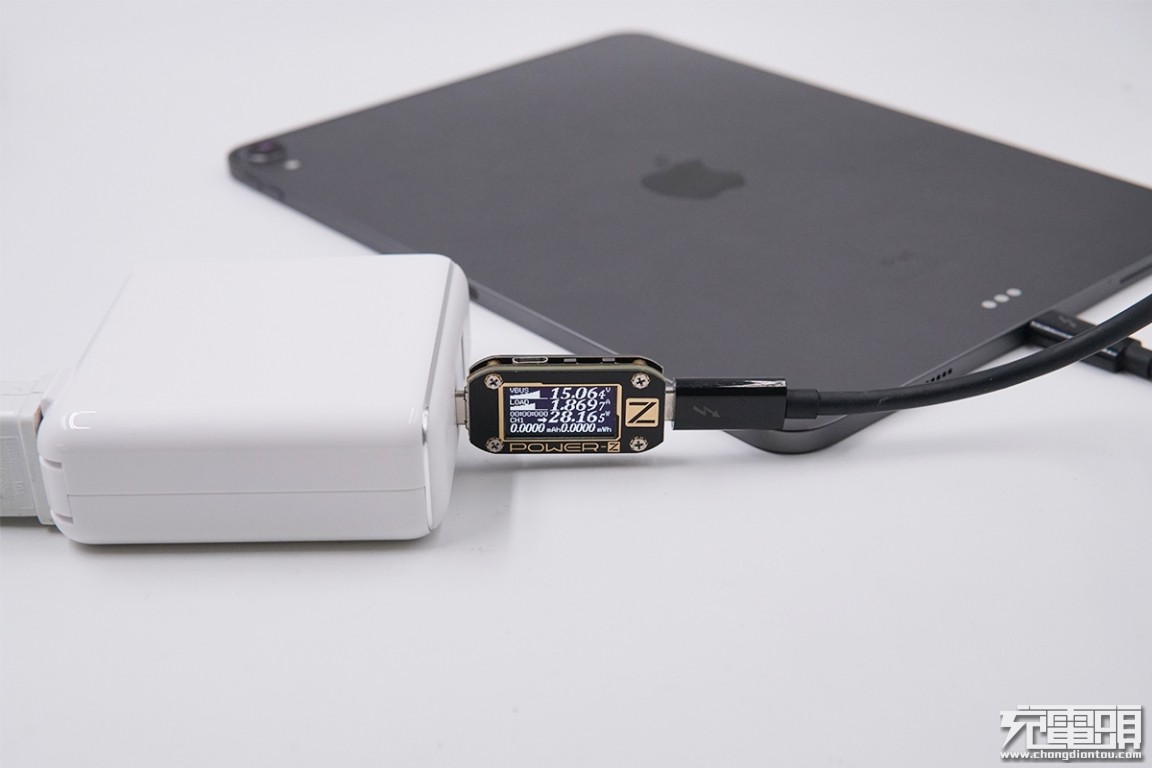 USB-C输出接口充iPad Pro 11英寸,电压15.06V,电流1.86A,功率28.16W,开启PD快充。
