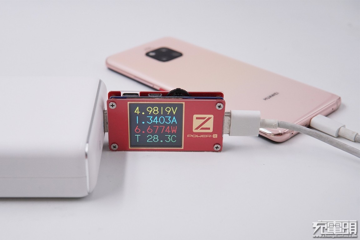 USB-A输出接口充华为Mate 20 Pro,电压4.98V,电流1.34A,功率6.67W,普通充电模式。