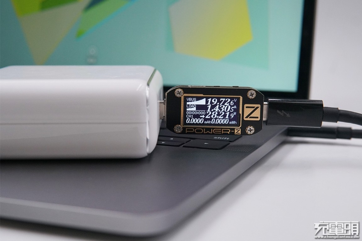 USB-C输出接口充MacBook Pro 2018款 13.3英寸,电压19.72V,电流1.43A,功率28.21W,开启PD快充。
