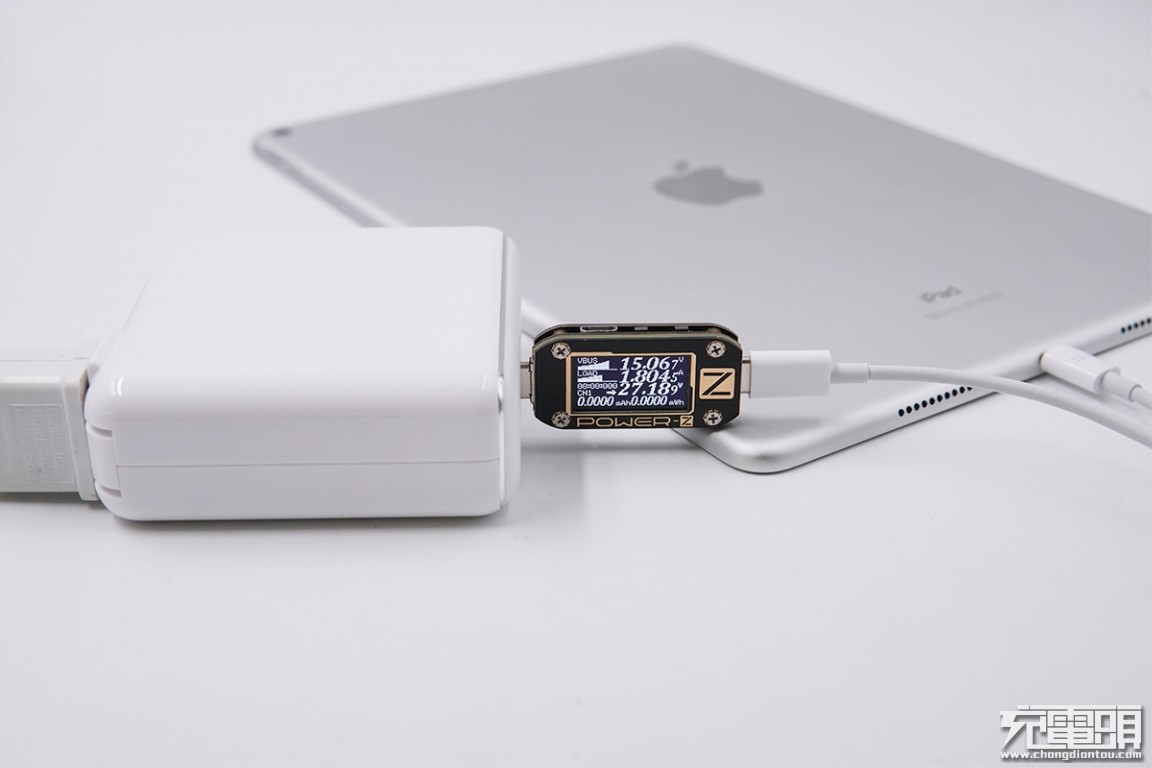 USB-C输出接口充iPad Air3英寸,电压15.06V,电流1.8A,功率27.18W,开启PD快充。