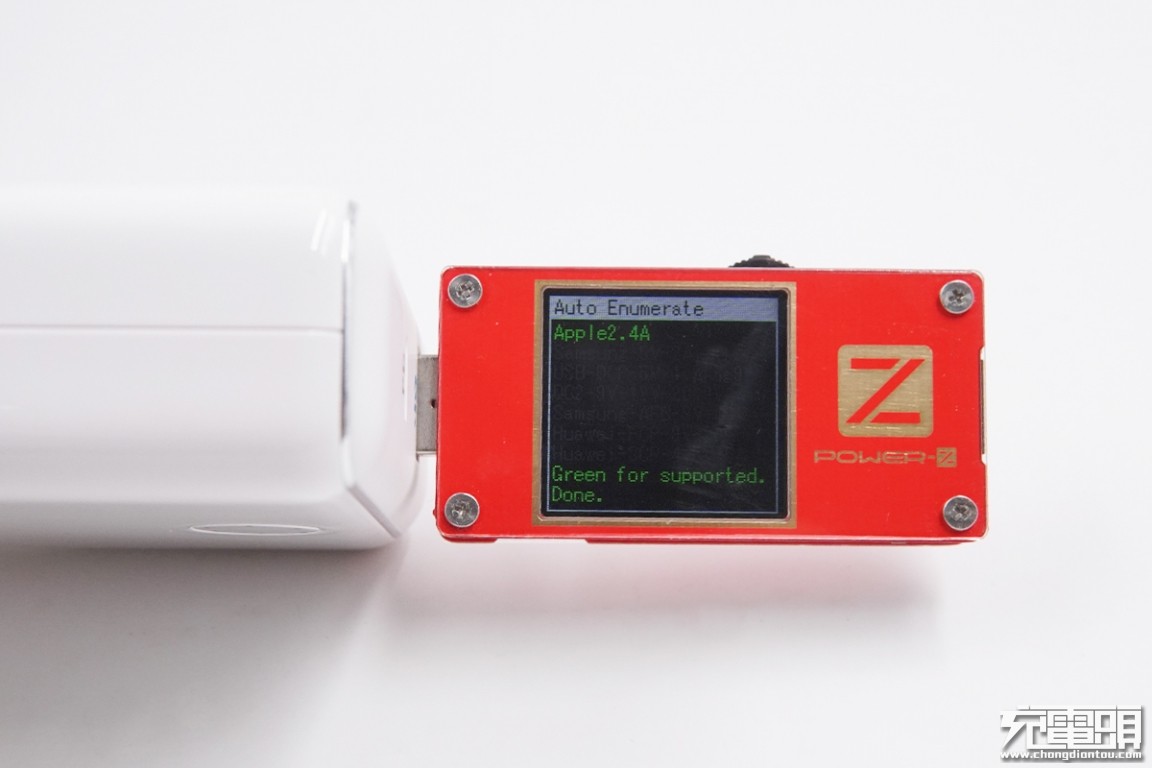 充电器模式下,USB-A口支持的协议与移动电源模式下是完全相同的,支持Apple 2.4A协议。