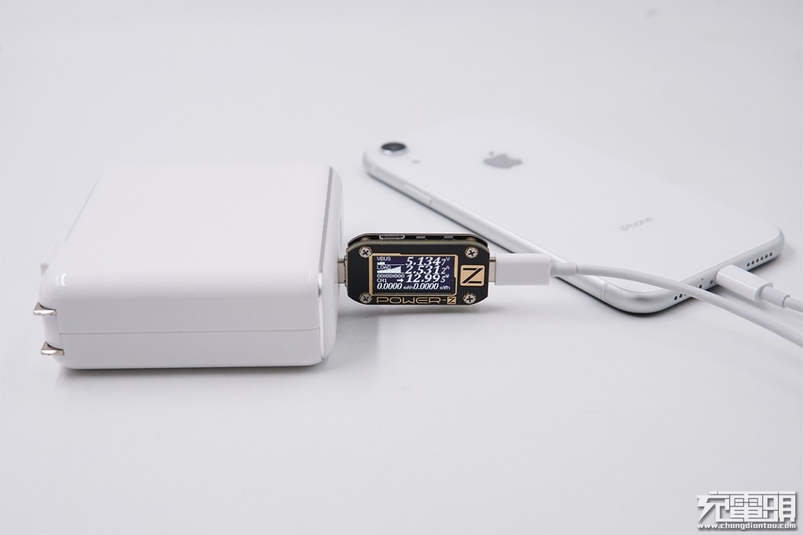 USB-C输出接口充iPhone XR,电压5.13V,电流2.53A,功率12.99W,开启PD充电。