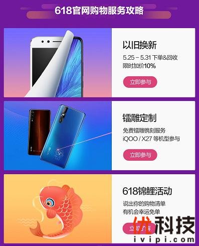 vivo官网举办618狂欢节活动,为给用户更多优先享受体验,无需等到618当天,自2019年5月25日0点起至5月31日23:59:59,用户即可参与形式多样的预售优惠活动,期间通过实力省不停、超级会员日、超级秒杀日、高潮狂欢等不同阶段,带给用户持续不断的惊喜。