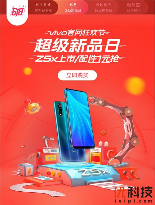 不仅如此,vivo特别打造的超级新品日,也以更多优惠助力618大促全面升级。作为此次活动推出的重磅新品,性能实力派Z5x除了是vivo首款采用6.35英寸极点全面屏设计的机型,更拥有的5000mAh大电池的超长续航能力,一度刷新业界续航排行。活动期间,Z5x新机低至1298元,同时赠XE680耳机。