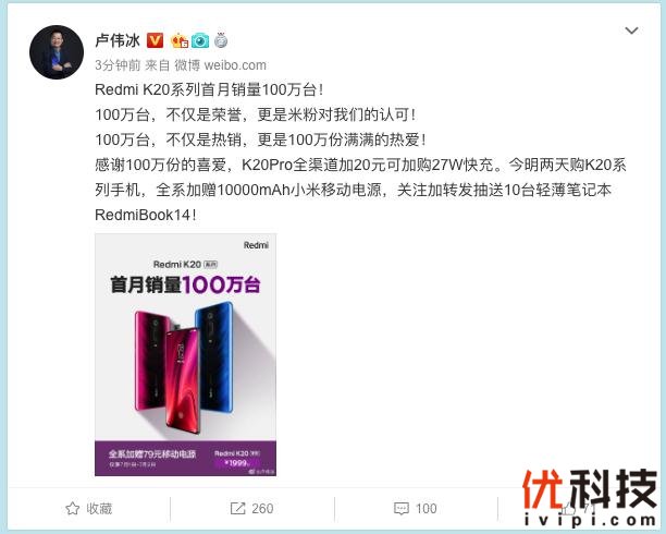 Redmi K20系列上市首月销量破100万台,站稳高端旗舰市场