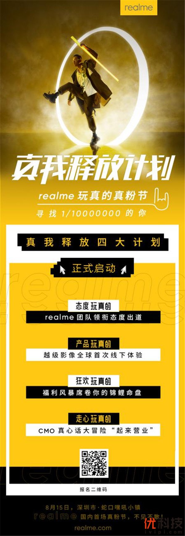 为了回馈陪伴realme一路成长的粉丝、与更多拥有“敢越级”精神的粉丝近距离的沟通,realme将于8月15日在深圳举办回国后的第一场粉丝节!目前,realme玩真的粉丝节招募通道已开启,粉丝可通过realme官方社媒报名,加入真我释放计划。