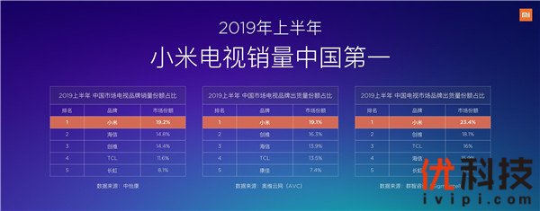 8月29日,在北京小米科技园举办的 Redmi新品发布会上,小米集团副总裁、红米Redmi品牌总经理卢伟冰发布了Redmi首款电视产品——Redmi红米电视70英寸。根据中怡康、奥维云网、群智咨询三大调研机构统计,小米电视取得了2019上半年销量中国第一的成绩。