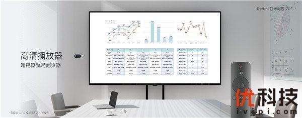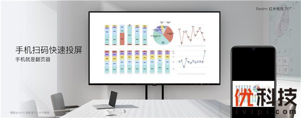 Redmi红米电视70英寸无需通过HDMI接口驳接笔记本电脑,用U盘即可开启会议, docx .xlsx .pptx .pdf 等主流办公文件格式均可流畅展示,遥控器就是翻页器。