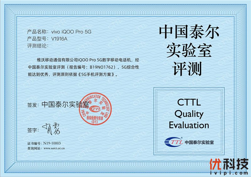 就在昨天,iQOO官方微博继续发布消息表示:iQOO Pro在中国泰尔实验室评测中,5G综合性能达到优秀,并获得相关证书,这是对iQOO Pro手机性能和品质的官方肯定。要知道,中国泰尔实验室是集通信技术发展研究、通信产品标准、测试方法、通信计量标准、计量方法研究,以及国内外产品的测试、验证、技术评估、测试仪表计量以及通信软件的评估、验证为一体的高科技组织,可以算得上是“官方钦点”。