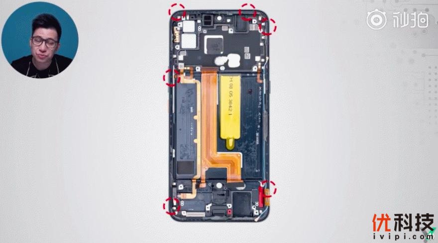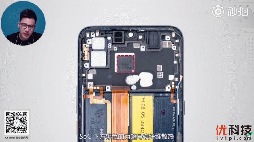 在拆机视频的开始,楼斌就似乎遇到了“困难”,不过最终在各种手段之下,前后盖被拆开,才找到iQOO Pro难以拆解的真实原因。为了让手机更加牢靠,iQOO Pro的粘接部分用足了胶水,增加工时工序的背后,换来的是可靠耐用。不仅如此,iQOO Pro还配置了多处缓冲层,并且在外部就已经使用了石墨散热膜,为的就是在极限条件下,手机产品的工作稳定。