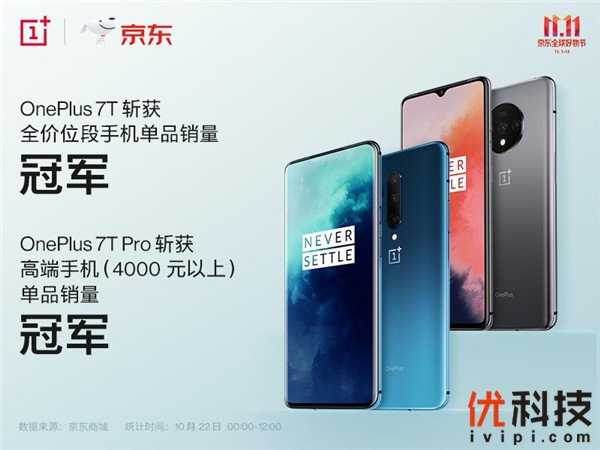 10月22日上午10点,刚刚发布的一加7T系列在官网和京东开启首销并获得骄人战绩,一加7T斩获全价位段手机单品销量冠军,一加7T Pro成为高端手机(4000元以上)单品销量冠军。