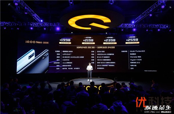 10月24日,“855新王牌”iQOO Neo 855版在北京黑糖盒子艺术中心发布。经过一周的火爆预售,该机将于11月1号0点正式发售,京东、天猫、苏宁三大电商平台开售优惠相继放出,领券最高优惠300元,最低到手价仅为1798元,更有iQOO入耳式耳机、半年碎屏宝、半年延保、3期免息分期等大礼相赠。