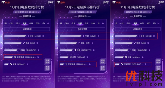 11月1日京东双11开门红,华硕主板再次凭强悍实力勇夺主板品牌销量、销售额双冠王。且截至11月3日,华硕主板稳居京东销售额排行榜第一,其子品牌ROG玩家国度表现同样优异,位居排行榜前五!秉承坚持完美、匠心独运、坚持完美、近乎苛求的理念,华硕主板旗开得胜,实力问鼎销售额第一,前五独占两席。目前,双11大促钜惠仍在继续,京东、天猫惊喜不断放出,有需求的用户可以持续关注。