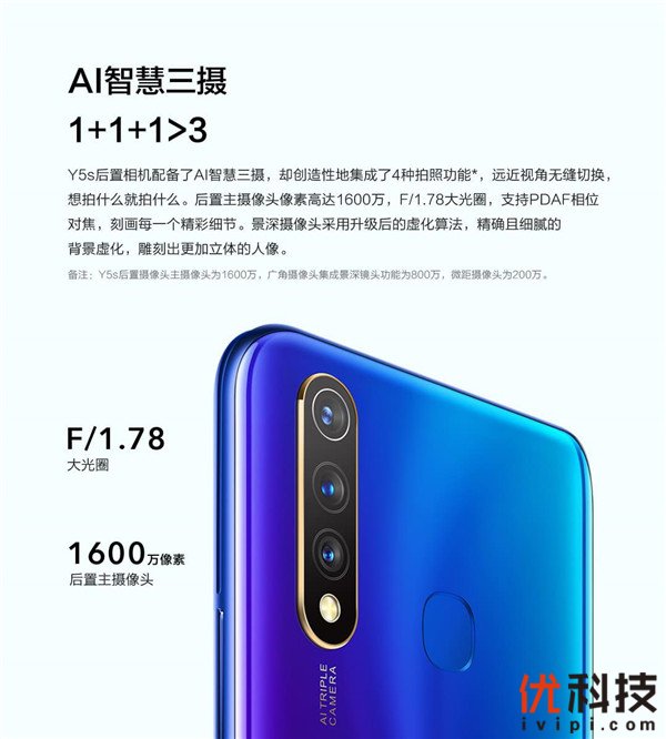 大电池超能续航、AI焕美三摄!vivo Y5s正式开售