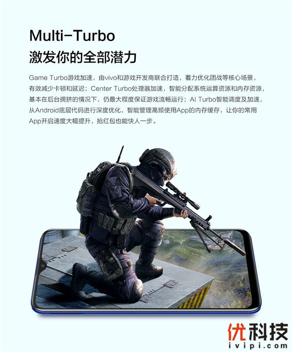 游戏上,vivo Y5s此次搭载的游戏魔盒全新升级,带来更沉浸的游戏体验,后台挂机、电竞模式2.0让游戏体验更出色;而vivo Multi-Turbo多涡轮加速引擎则能激发手机的游戏潜能。