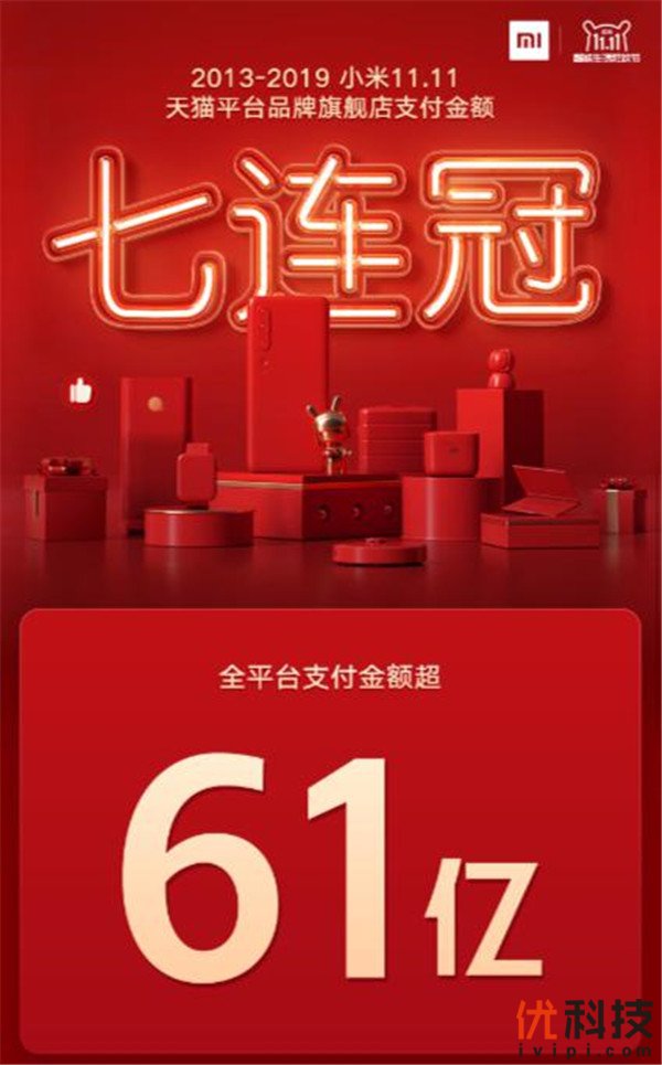 2019年11月11日,一年一度的双11大战正式拉开序幕。全球智能生活的领先者小米集团,以「智能生活狂欢节」为主题,携旗下“手机+AIoT”产品全面参与双11大战。据相关数据显示,在天猫双11当中,开场仅2分钟,小米天猫官方旗舰店销售额就突破亿元,随后25分钟超5亿元。根据最新相关数据,今年的双11,小米全渠道支付金额超61亿元,天猫平台品牌旗舰店支付金额超21亿元,蝉联天猫平台品牌旗舰店支付金额7连贯。小米AIoT产品全平台销量超555万件,同比去年双十一增长148%。此次双十一小米产品狂揽天猫、京东、苏宁三大平台219项第一。
