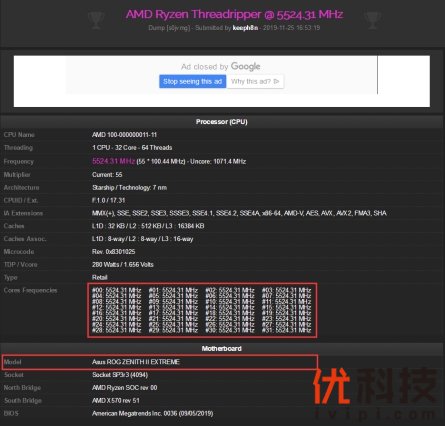 32全核5.5G 华硕ROG Z2E主板助线程撕裂者3970X破多项纪录