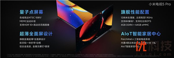 2020年,小米10全力冲击高端手机市场,小米电视亦是如此。2019年11月5日发布小米电视5系列,全面引领高端电视的新技术趋势,备受消费市场欢迎。其中,小米电视5 Pro搭载量子点屏幕,NTSC色域高达108%,通过HDR10+技术认证,支持MEMC动态补偿技术,为用户带来更高级的视听体验。薄至5.9mm的机身、一体折弯工艺和无螺钉美背,整机颜值爆表。此外,小米电视5全系搭载远场语音技术,无需遥控器即可唤醒小爱同学。