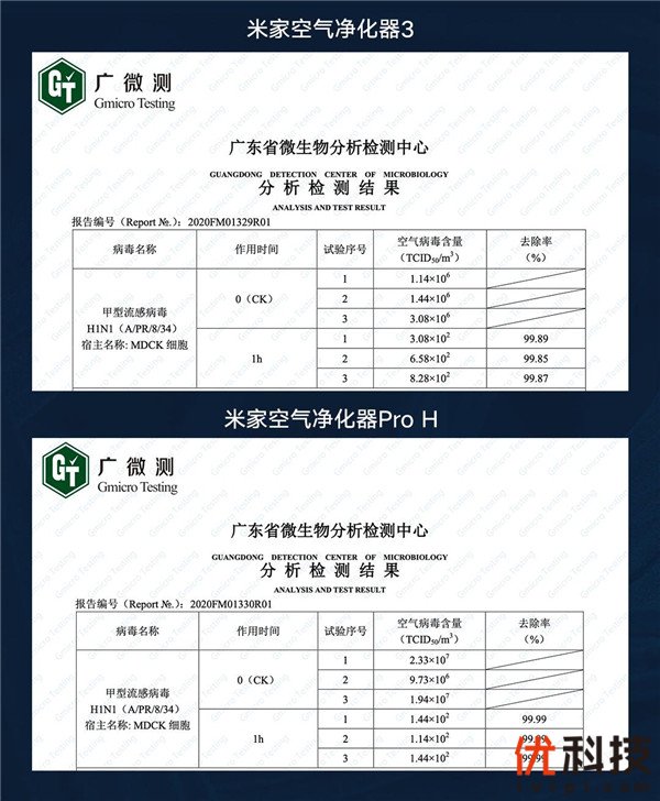 小米空气净化器的病毒检测报告由经过国家认证的专业检测机构——广东省微生物分析检测中心检测出具。以H1N1病毒为例,通常通过飞沫进行传播。而飞沫的直径通常为1-10微米,而小米空气净化器可以针对直径0.3微米以上的颗粒物进行有效的过滤,这也是为何小米空气净化器能够有效滤除以飞沫为传播介质的病毒。
