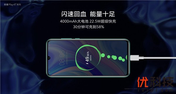 同时,荣耀还为Play4T Pro配备了22.5W超级快充,仅30分钟便能充到58%电量,让年轻人告别续航焦虑。