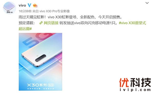雨过天晴见虹影,vivo X30新配色虹影正式开启预售