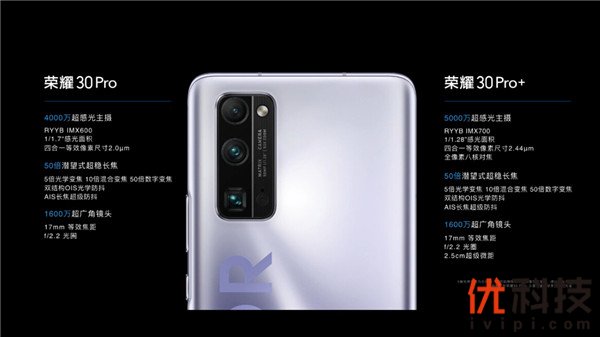 而影像系统方面,此次荣耀30系列则是展示出了强悍的实力,荣耀30 Pro+选用的5000万像素IMX700超感光镜头,拥有1/1.28英寸型目前业界最大底传感器。而通过搭载华为和荣耀独家使用的RYYB滤波器,进一步提升传感器感光能力,像素聚合后等效RGGB约2.88μm超大单位像素尺寸,具备最高支持ISO 409600的超感光能力。并且还支持全像素八核对焦能力,即使在暗光场景下依然有出色的对焦能力。