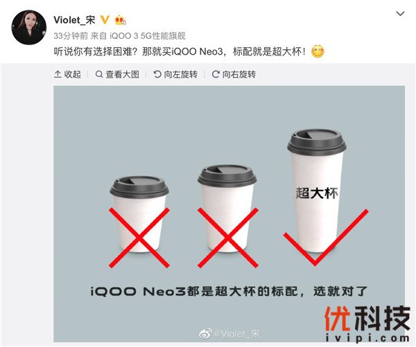4月21日,iQOO手机官微发布最新通信技术长图介绍,再爆“超速配置”,确认iQOO Neo3将支持5G双模、Wi-Fi 6以及配置了全方位的天线系统,带来网络不断连的5G极速畅快体验。iQOO产品经理也在社交媒体透露,“iQOO Neo3都是超大杯的标配”,全系采用顶级核心配置,极具竞争力。