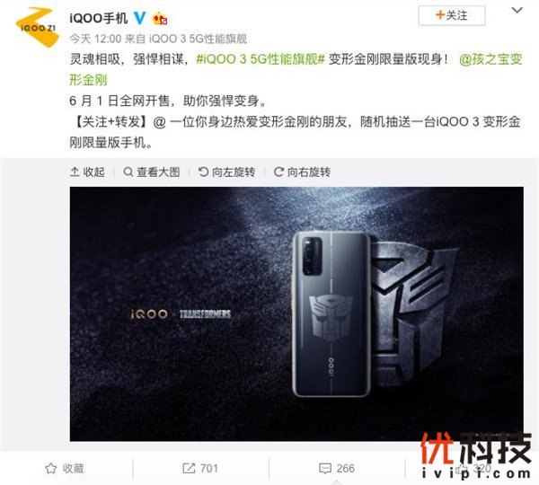 灵魂相吸强悍相谋 iQOO 3变形金刚限量版即将开售
