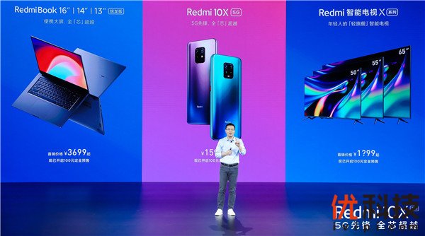 2020年5月26日,小米集团旗下品牌Redmi召开「5G先锋 全芯超越」新品发布会,发布全新X系列手机Redmi 10X、Redmi 10X Pro、Redmi 10X 4G三款新品,以及全系配置金属边框、MEMC运动补偿技术的Redmi智能电视X系列和搭载最新一代AMD锐龙4000系列处理器的Redmibook锐龙版笔记本。