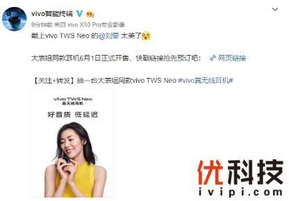 刘雯同款 vivo TWS Neo真无线耳机6月1日开售