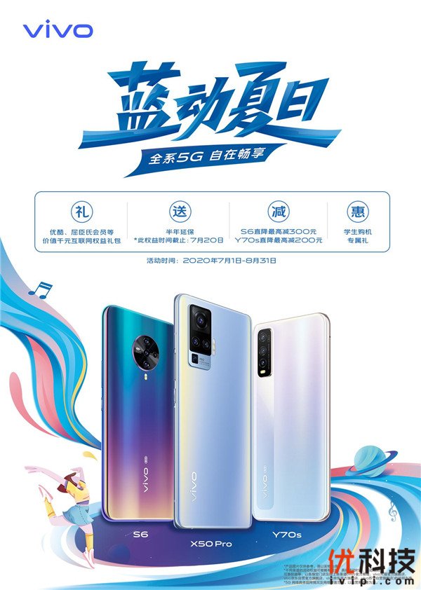为了推动5G手机普及进程,vivo联合百事中国共同举办“蓝动夏日”促销活动,凡在vivo指定门店购5G手机,不仅可以畅享百事可乐,还有吃喝玩乐各种夏日豪礼赠送,vivo还准备了满分福袋、学生专属优惠等惊喜;线上购机亦可享受全场至高24期免息、学生专属购机礼、950元大礼包等暑期福利。