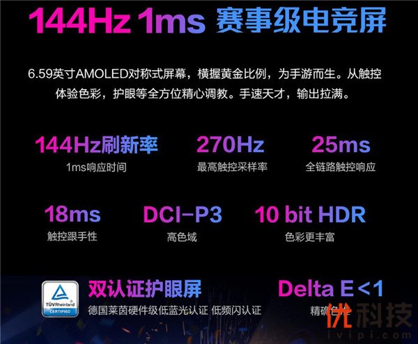270Hz触控采样率,以及25ms全链路触控响应,滑动触控延时仅为18ms,大幅提高玩家操作速度及跟手性。同时,在色彩和护眼维度上上,ROG游戏手机3支持DCI-P3高色域,色彩精准度Delta E<1,并且支持10 Bit HDR,还获得了德国莱茵硬件级低蓝光护眼认证和低频闪认证,画面呈现逼真自然,护眼的同时,将以前所未有的视觉冲击力强化沉浸式游戏体验。