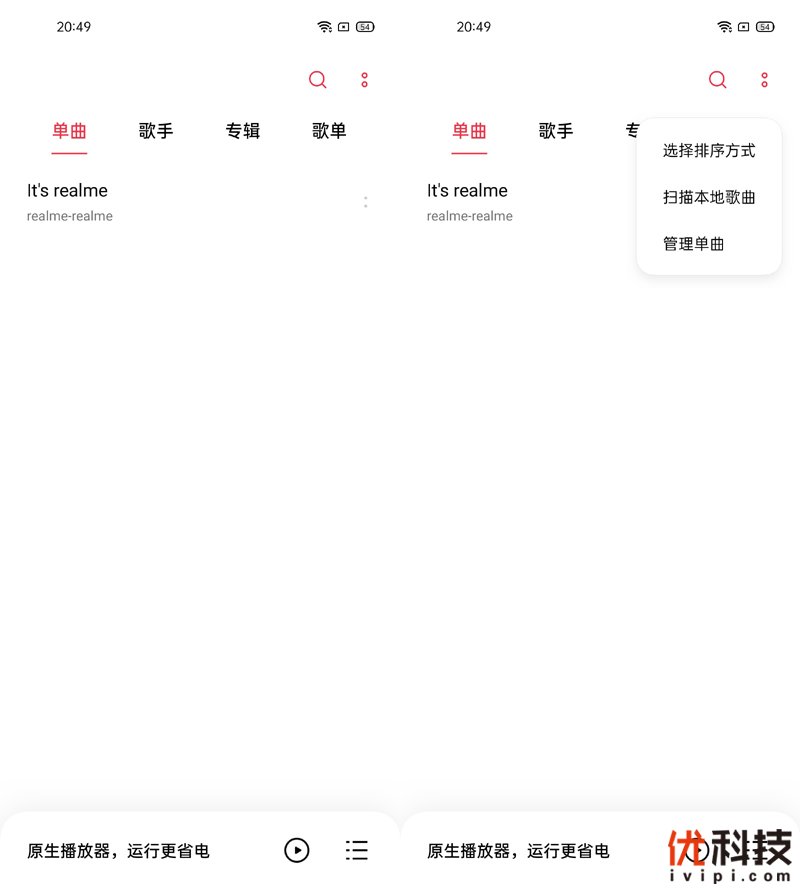Realme UI内置的音乐播放器可以说是我近年来接触手机中的播放器最简约的了,播放器仅有播放功能,去除了很多人用不到的复杂设置,让欣赏音乐更加的简单,同时还可以有效的降低系统功耗,更加的省电。