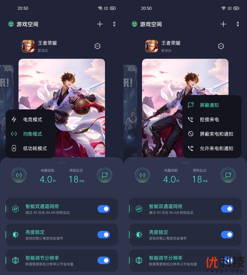 至于游戏体验方面,realme 真我 X7在系统内还提供了最新版游戏空间,在游戏空间内可以实时了解到手机的续航、网络延迟等信息。并且直接切换性能模式、屏蔽通知等功能,另外包括智能双通道网络、亮度锁定和智能游戏分辨率都有直接开关控制。