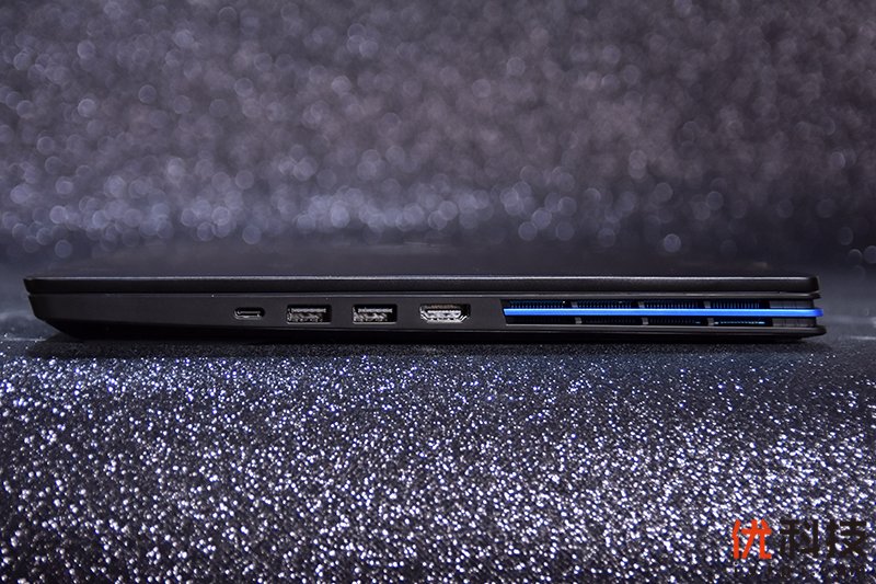 机身右侧则依次是 HDMI 接口、2 个 USB 3.2 Gen 1 的 Type-A 接口以及一个 Type-C 接口,支持图像和数据传输,接口类型和数量都比较丰富的。