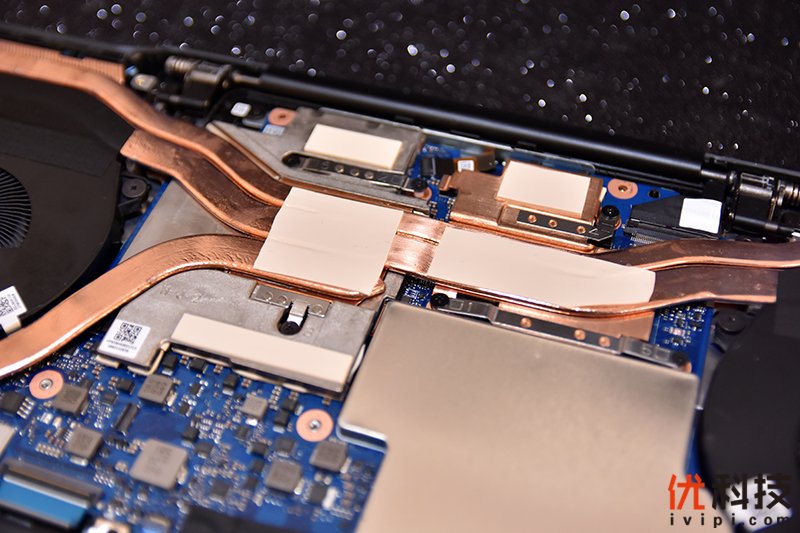去掉整块D面盖板后可以看到荣耀猎人游戏本V700的内部做工非常的规整,CPU和显卡两大发热源都被合理地放置在中上部,让着两个发热大户避开了键盘区域。