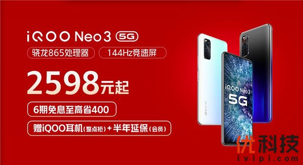 促销产品方面,vivo iQOO除了为大家准备了高能爆款产品之外,部分刚刚上市的新品也强悍上架。搭载骁龙865处理器和144Hz竞速屏的iQOO Neo3 5G版手机活动售价2598元起,参与6期免息分期活动,最高可省400元。除此之外,购买iQOO Neo3 5G版手机的用户还可以参与整点抢活动,奖品为iQOO专用耳机,会员再送半年延保。